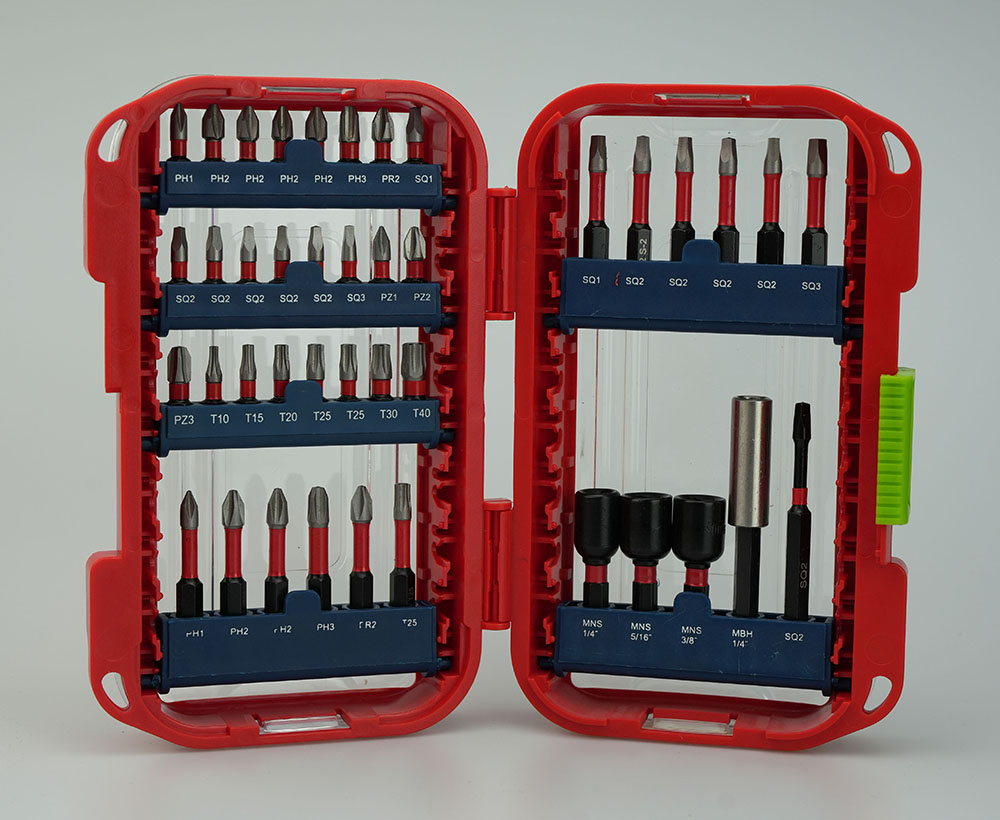 موقع > الصفحة الرئيسية > مركز المنتج > مجموعة رؤوس مفك البراغي > مجموعة بتات محرك التأثير مكونة من 41 قطعة